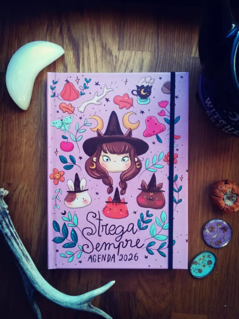 E’ arrivata la nuovissima agenda Strega Sempre 2026, giunta alla sua nona edizione! L’agenda è annuale 12 mesi, formato A5, cartonata, con chiusura ad elastico, schema settimanale, tante illustrazioni e moltissimo altro!!!