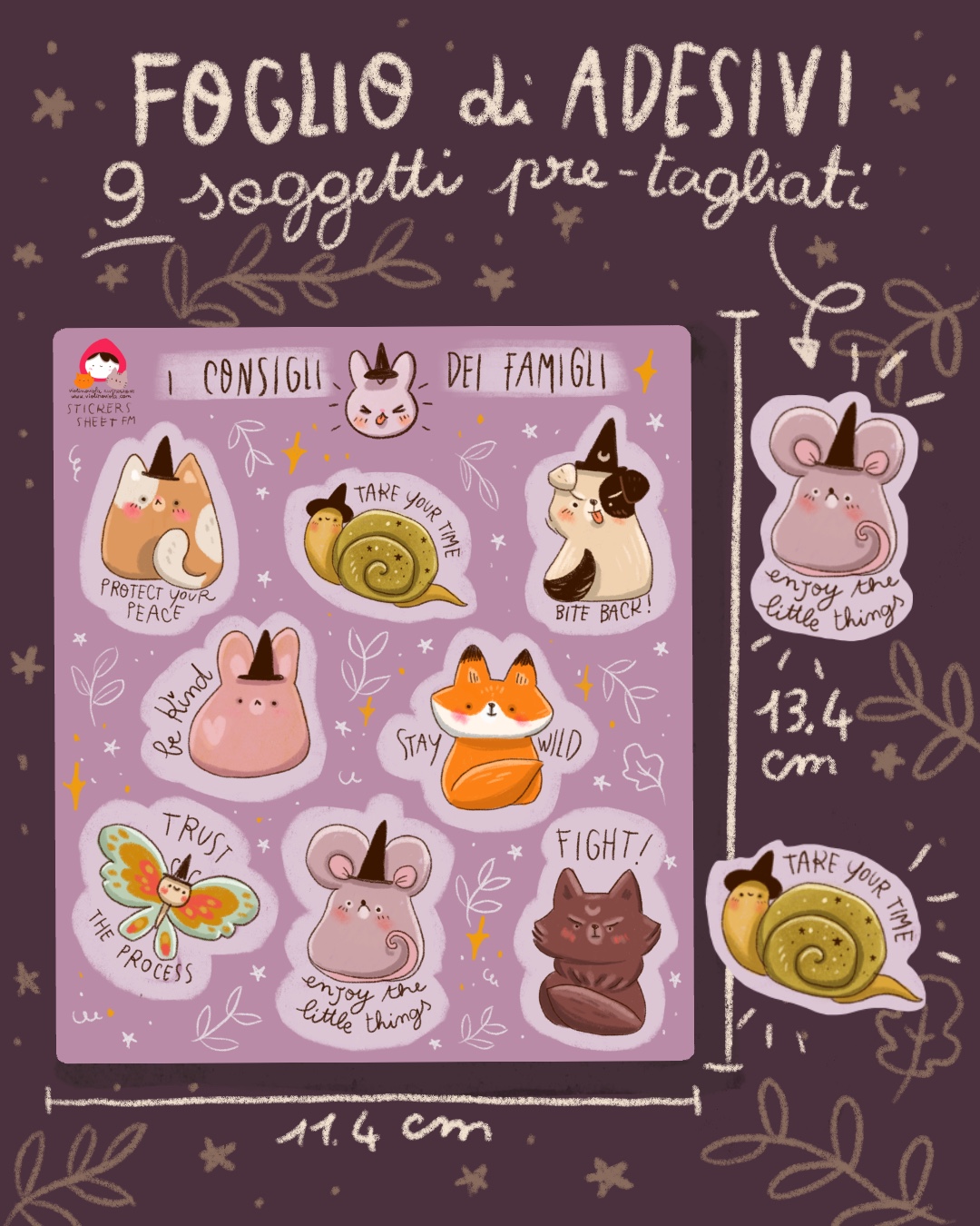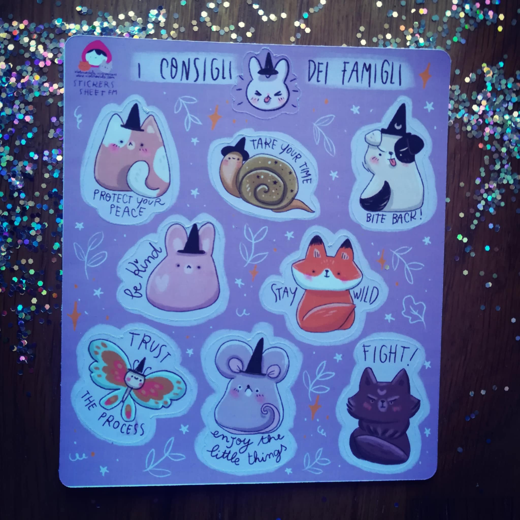 Foglio di adesivi pre tagliati con preziosi consigli dei famigli
