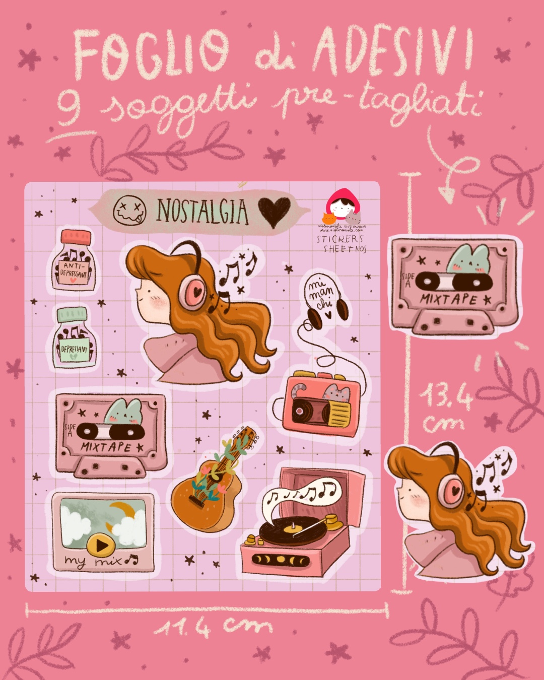 Gli Adesivi sono pre- tagliati, su ogni foglio di sono nove elementi staccabili perfetti per personalizzare il vostro diario, agenda, planner o bullet journal