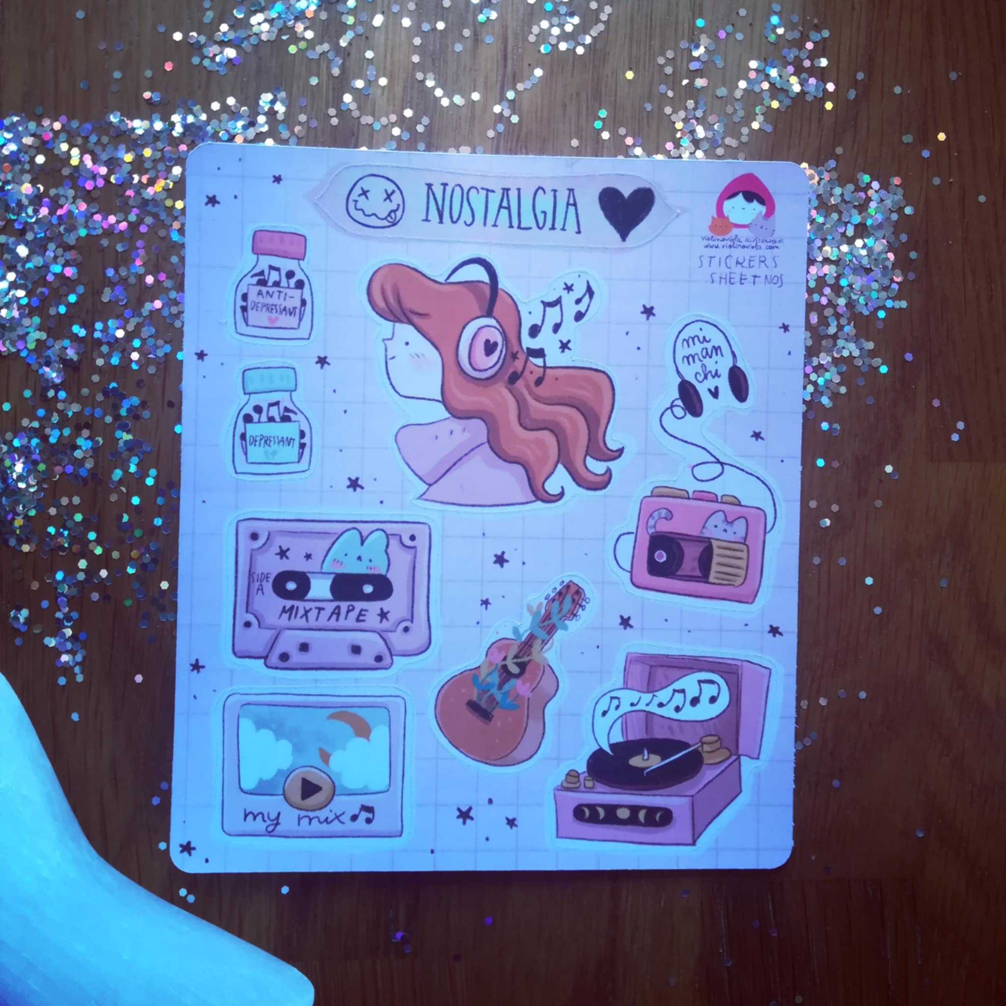 Foglio di adesivi pre tagliati sul tema musica e malinconia