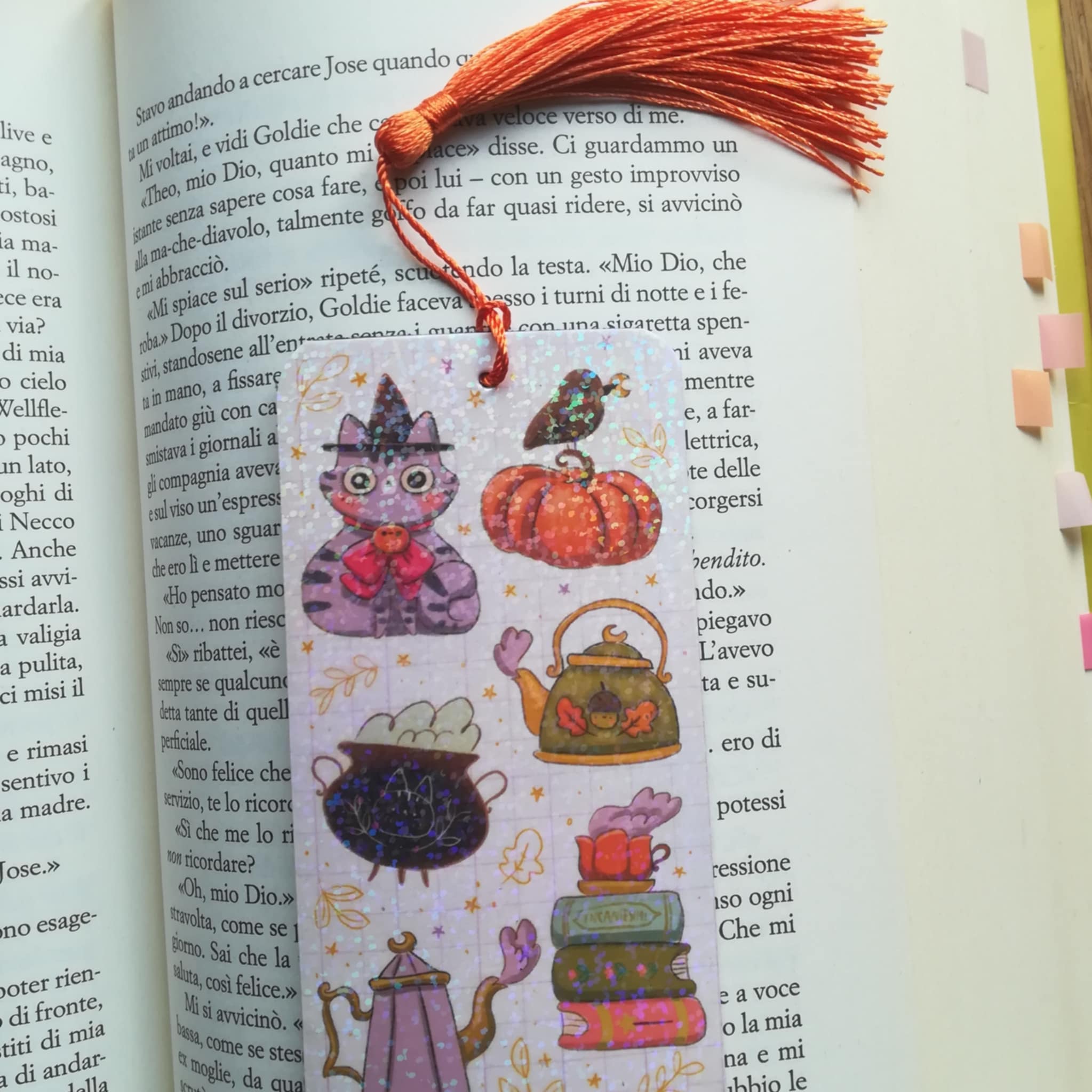 il segnalibro misura circa 5,6 x 14,5 con nappina arancione