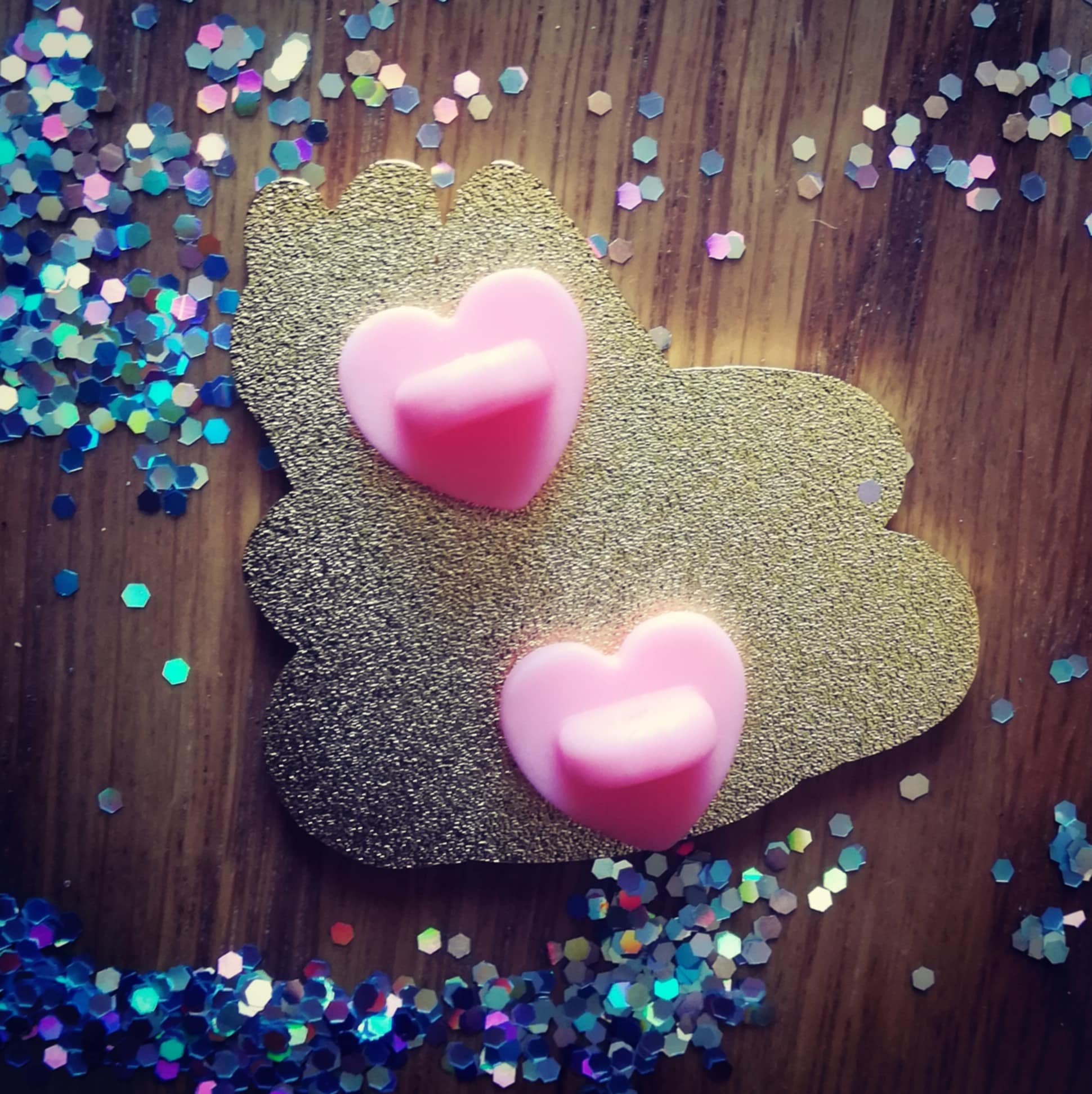 Spilla in metallo smaltato, chiusura sul retro con doppio perno e fermo in gomma a forma di cuore.